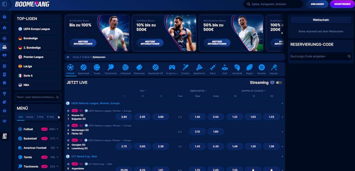 Boomerang Bet überzeugt mit einem riesigen Wettangebot und fairen Quoten, die kaum Wünsche offenlassen. Auch die Erfahrungen mit dem Boomerang Bet Casino sind durchweg positiv. Hier kommt garantiert keine Langeweile auf.