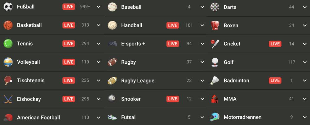 Die Cashwin Live-Wetten konnten im Cashwin Test überzeugen. Die Live Wettoptionen sind für eine große Anzahl an Sportarten vorhanden. Unsere Cashwin Erfahrungen zeigen, dass Quotenänderungen durch grüne und rote Pfeile angezeigt werden, so dass schnell reagiert werden und das Beste aus den Livewetten herausgeholt werden kann.