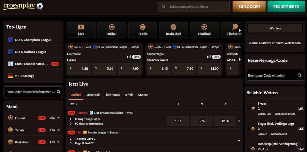 Crownplay ist ein hervorragender Wettanbieter, bei dem Sie sicher und seriös wetten können. Sie finden dort eine Reihe von Sportarten, Funktionen und Co. Dabei werden nicht nur die Freunde bekannter Disziplinen wie zum Beispiel mit Crownplay Fußball oder Crownplay Tennis abgeholt, sondern auch die von kleineren Sportarten.