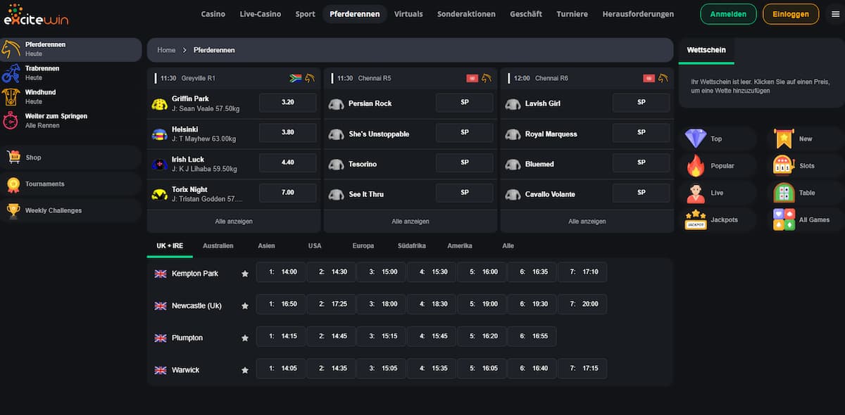 So wird sich auch ein Neueinsteiger problemlos zurechtfinden. Nach unserem Excitewin Test wollen wir aber auch lobend hervorheben, dass du im Portfolio des Anbieters mit vielen sinnvollen Filter- und Sortierfunktionen arbeiten kannst. Insbesondere, wenn das Wettangebot so umfangreich ausfällt, wie bei diesem Bookie, halten wir die Möglichkeit solcher Voreinstellungen für extrem wichtig.