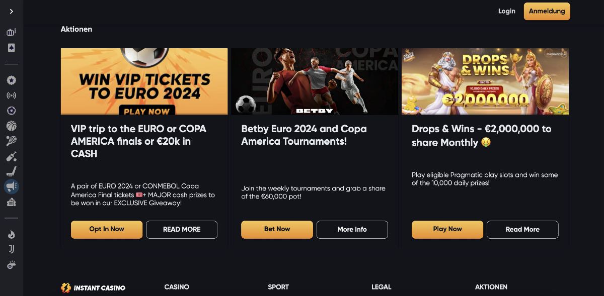 In der Instant Casino Bewertung muss herausgestellt werden, dass die Aktionsvielfalt des Online Casinos noch Luft nach oben lässt.
