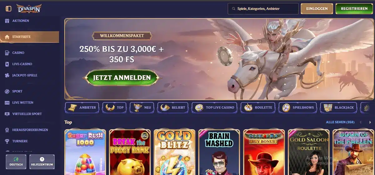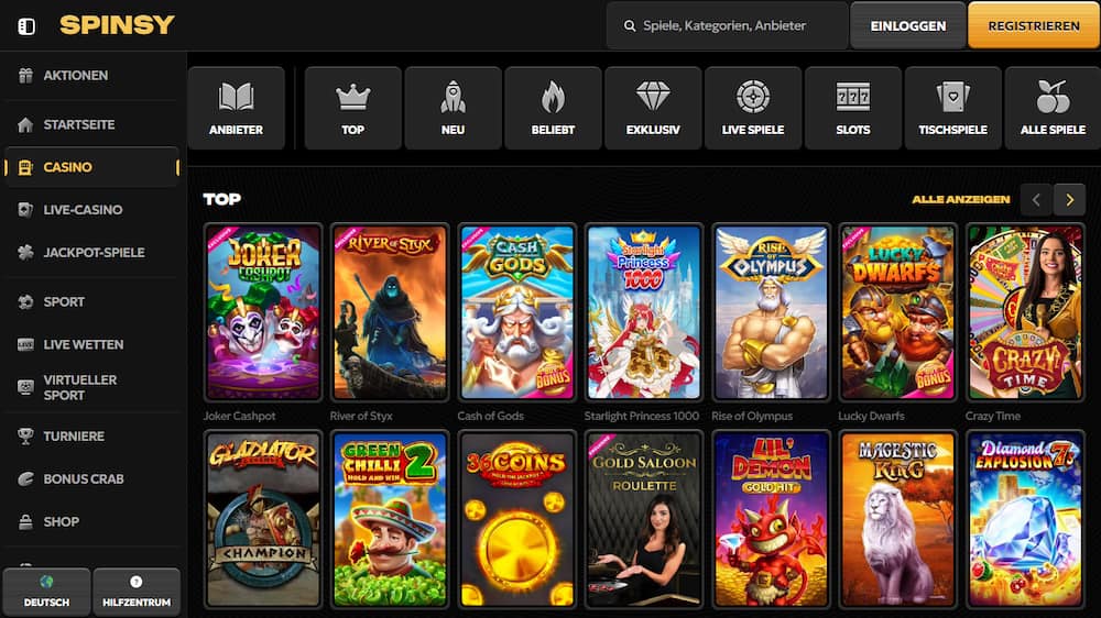 Wenn Sie lieber beginnen möchten, im Sportwetten online Casino Bereich zu spielen, müssen Sie nur die Registerkarte „Casino“ am oberen Rand der Seite anklicken. Dann werden Ihnen alle Spielkategorien angezeigt.