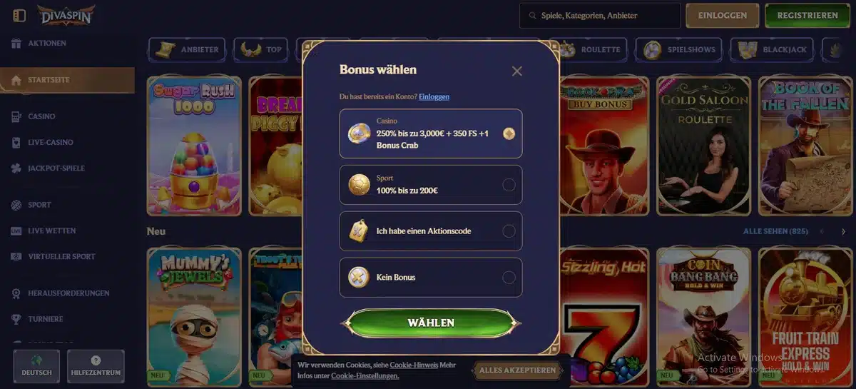 Wenn Sie den Willkommensbonus in Anspruch nehmen möchten, prüfen Sie bitte den erforderlichen Mindestbetrag. Denken Sie daran, dass die Prämie oft ein Prozentsatz des Einzahlungsbetrags ist. Bei unserem Casino und Sportwetten Anbieter Mafia Casino sind es zum Beispiel 100 % der ersten Einzahlung bis zu 500 € für deutsche Nutzer.