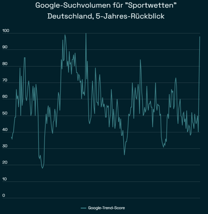 Dass die Nachfrage dieser Tage so hoch ist, zeigt die Suchmaschinenauswertung von Google. Der Google-Trend-Score für den Begriff “Sportwetten” notiert aktuell bei 98, wobei der Maximalwert von 100 das größtmögliche relative Suchvolumen angibt. Noch höher war das Suchaufkommen lediglich Anfang Dezember 2020.Willbet Kundenservice Deutschland – 24/7 Live-Chat & Deutschsprachig