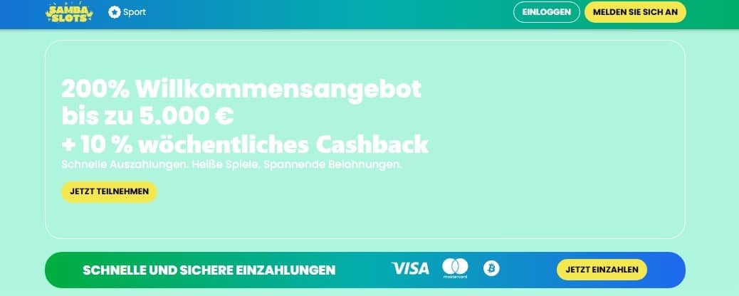 Die Samba Slots Einzahlung ist auf Kreditkarten und Kryptowährungen beschränkt: