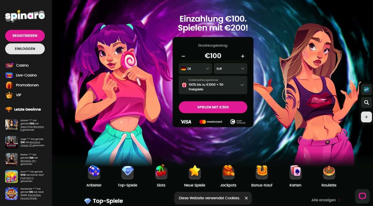 Wer Sportwetten mit Kryptowährungen platzieren möchte, ist bei Spinaro also genau richtig. Im Gesamtbild zeigt sich, dass Transaktionen bei Spinaro schnell, sicher und zuverlässig verarbeitet werden.