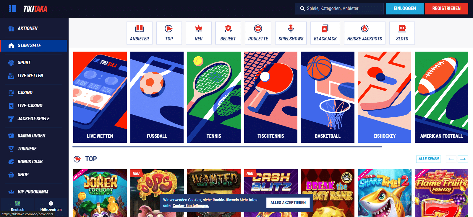 Wer Abwechslung zu den klassischen TikiTaka Wetten sucht, findet im Casino-Bereich jedenfalls ein solides Zusatzangebot.