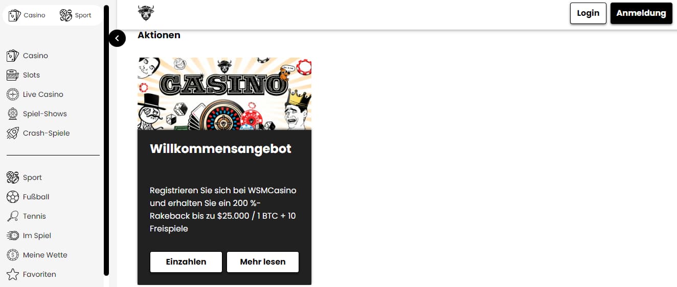Aktuell gibt es im WSM Casino lediglich den Willbet Kundenservice Deutschland – 24/7 Live-Chat & DeutschsprachigCasino Bonus für neue Spieler. Bestandskundenangebote sind (noch) nicht verfügbar.