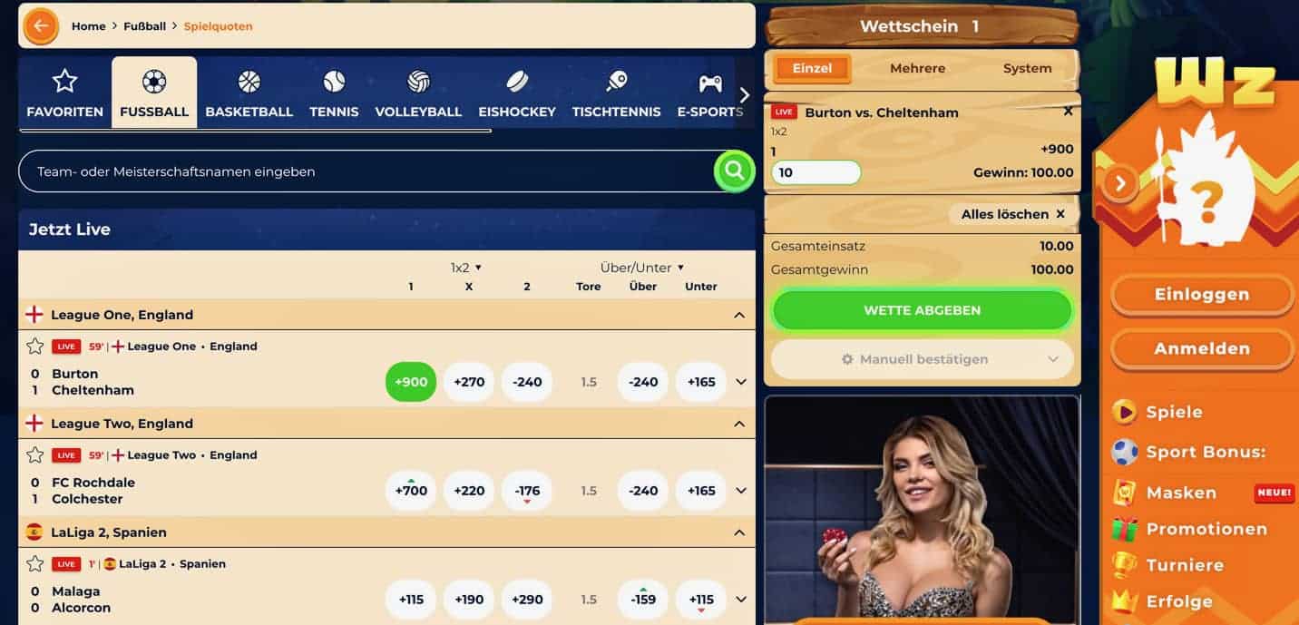 Das Fehlen einer mobilen App ist zwar ein großes Manko, wird aber durch eine hybride Website wettgemacht, auf der die Nutzer ihre Wetten schnell und einfach platzieren können. Alles in allem ist Wazamba für diejenigen, die auf der Suche nach einem Sportwettenanbieter sind, eine Plattform, die sie in Betracht ziehen sollten.