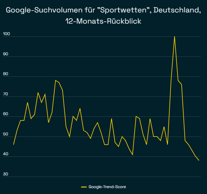Indes zeigt die Infografik, dass sich Olympia Sportwetten zwar großer Beliebtheit erfreuen, dass die EM 2024 für das Wettgeschäft allerdings eine größere Rolle spielte. Der Google-Trend-Score für den Begriff “Sportwetten” notiert aktuell bei 38, vor wenigen Wochen rangierte er bei 100 (Maximalwert, der das höchste relative Suchvolumen angibt).