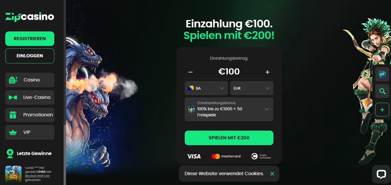 Mit einem Klick auf den Button „Einzahlung“ kann man die erste Einzahlung von Guthaben auf das neue Wettkonto anstoßen. In unserem Zipcasino Test haben wir festgestellt, dass Sport- und Tipp-Fans aus einer ganzen Reihe von Zahlungsmitteln auswählen können. Dazu zählen unter anderem: